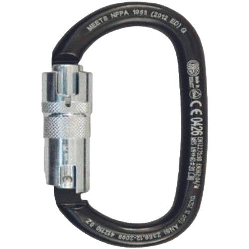» 412YZ ovális acél karabiner automatikus hármas zárral, 40 kN » tömeg: 0,220 kg » nyílás: 21 mm » EN 362
