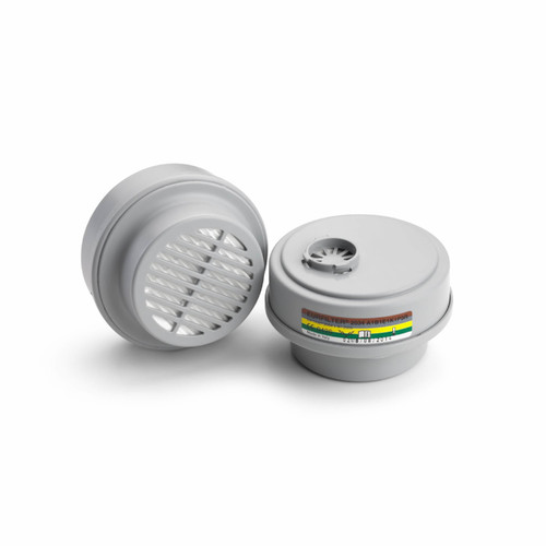 * Bajonett csatlakozású A1B1E1K1P3 kombinált szűrőbetét 65 ° C feletti forráspontú szerves, szervetlen, kéndioxid és egyéb savas gázok és gőzök, valamint ammónia és szerves amin származékok, továbbá mérgező hatású szilárd és folyékony részecskék ellen* Gyors csatlakoztatás, kizárólag az ETNA (6ETN200NSI) és a PANAREA TWIN (6PAN200NSI) álarcokhoz használható* A szűrőbetét háza ABS alapanyagú* Szűrő alapanyaga: aktív szén és nemszőtt polipropilén.
