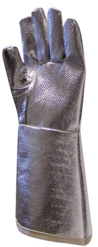 *350 g/m2 vastag, hő- és vágásbiztos aramidszál aluminizált külső réteggel*véd sugárzó- (20kW/ m2 > 150 sec) és kontakt (100°C >15 sec) hőhatás, valamint közvetlen lánghatás (>7 sec) ellen*forró fémcseppek elleni védelem hegesztő munkálatoknál*GAN59892: 38 cm hosszú mandzsettás változat