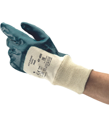 • kötött pamutkelméből varrt, nitrilbe félig mártott antisztatikus és olajálló kesztyű rugalmas kötött mşizsettával