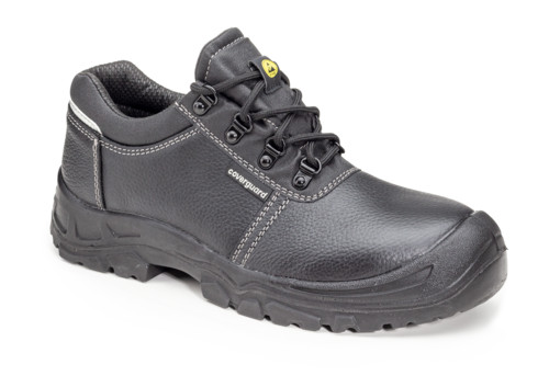 * fekete biztonsági védőlábbeli színbőrből, ESD tulajdonsággal * antisztatikus, olajálló, hajlékony kétrétegű PU talp, SR fokú nedves kerámia és glicerines acél felületre bevizsgált csúszásmentességgel * acél lábujjvédő leeső tárgyak- és acél talplemez talpátszúrás ellen* PU orrborítás: plusz mechanikai illetve folyadékok és vegyszerek elleni védelem, jó vízállósági és vízgőzáteresztő tulajdonságok* szivacsos bokarész és békanyelv és fényvisszaverő díszcsík a sarokrészen