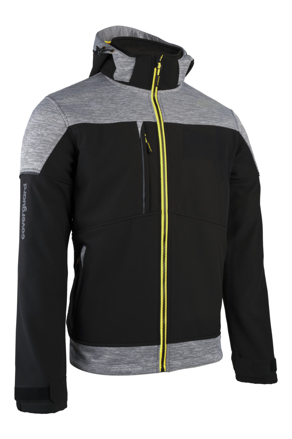 * Softshell: 94% GRS újrahasznosított PES / 6% elasztán + TPU membrán + újrahasznosított polár - 320 g/m² vastag* Vízállóság: 10 000mm, légáteresztő képesség: 5000 g/m2/24H* Levehető kapucni Drawcord húzózsinórral* Állítható mandzsetta* Cipzár az álló gallér tetejéig + állvédelem* Szellőzést biztosító rejtett cipzáras nyílások a hónaljnál* 3 külső zseb, kontrasztos díszítés, állítható derék* Hosszított hátrész