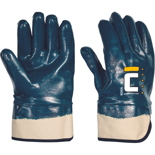 • varrott pamut kesztyű • vastag csúszásgátló nitril mártás • széles mandzsetta , amely védi a ruhaujjat • alkalmas erősen olajos környezetben, koptató hatású anyagokkal végzett munkára
