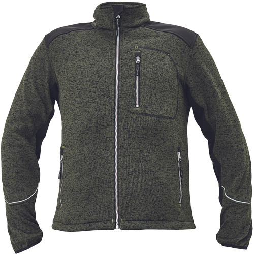 • cipzáras kardigán kötött, melírozott textilből • belül fésült, puha felület • kontrasztos softshell erősítésekkel a vállakon és az ujjakon • 1 cipzáras mellzseb • 2 cipzáras oldalzseb • a kabát alja zsinórral szűkíthető • dekoratív fényvisszavető szegély • hüvelykujj bújtató