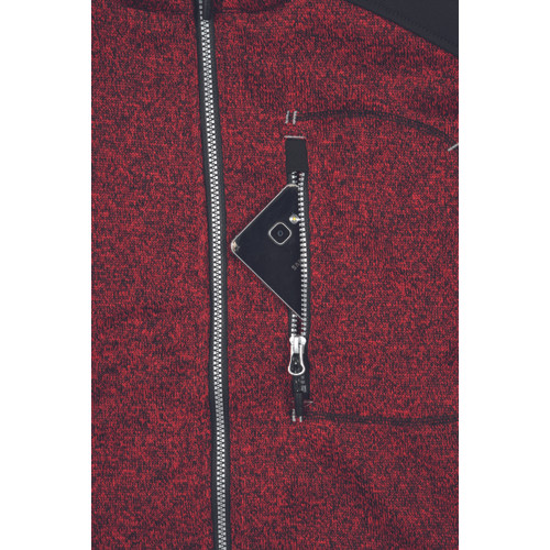 • cipzáras kardigán kötött, melírozott textilből • belül fésült, puha felület • kontrasztos softshell erősítésekkel a vállakon és az ujjakon • 1 cipzáras mellzseb • 2 cipzáras oldalzseb • a kabát alja zsinórral szűkíthető • dekoratív fényvisszavető szegély • hüvelykujj bújtató