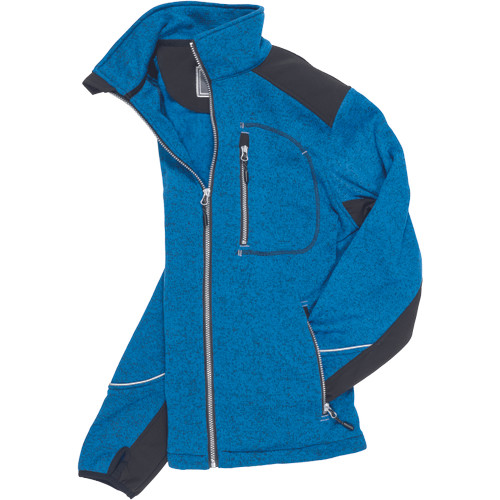 • cipzáras kardigán kötött, melírozott textilből • belül fésült, puha felület • kontrasztos softshell erősítésekkel a vállakon és az ujjakon • 1 cipzáras mellzseb • 2 cipzáras oldalzseb • a kabát alja zsinórral szűkíthető • dekoratív fényvisszavető szegély • hüvelykujj bújtató