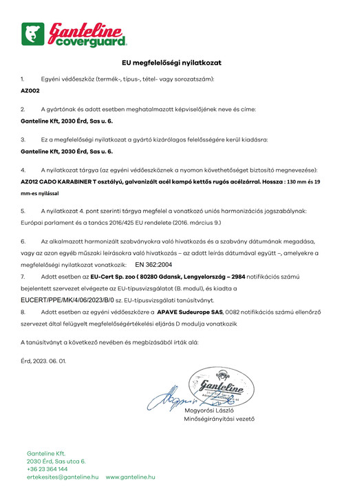 91 - Karabínerek, rögzítési pont