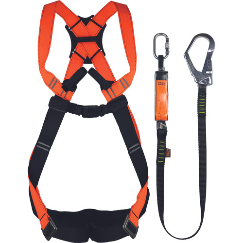 » függőleges létrákon végzett munkákhoz, ipari és épület karbantartáshoz » testheveder, energiaelnyelő hevederrel és kampós karabinerrel