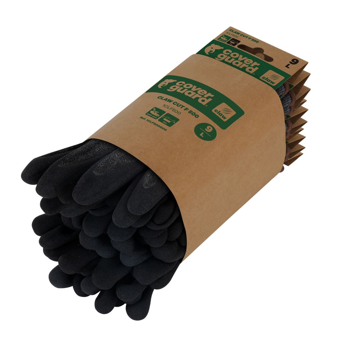 A CLAW CUT termékcsalád egy új generációs vágásálló kesztyű, amelyet a legigényesebb munkákhoz terveztek, magas vágásállósági szinttel (CUT D-től A9-ig), és kiváló kényelmet, valamint kivételes ügyességet biztosít minden munkakörnyezetben (száraz, nedves és olajos).A CLAW CUT F 500 modell finom anyagmozgatásra lett kifejlesztve száraz és olajos környezetben. A magas 21-es kötés, amely egy rendkívül puha és erős üvegszál, poliészter, acél és spandex alapú anyagból készült, második bőr érzést nyújt, miközben maximális vágásvédelmet biztosít (CUT F, az EN388 szabvány szerint).A nitril dupla rétegű tenyérbevonat szemcsézett felülettel vízálló, és a hosszú megerősítés a hüvelykujj és a mutatóujj között kiváló tapadást és jó fogást biztosít a legigényesebb munkák során száraz és olajos környezetben.A CLAW CUT F 500 újrahasznosított poliészterből készült, és RCS tanúsítvánnyal rendelkezik (a termék összsúlyának 16%-a). Üvegszál nélkül.Ez a kesztyű érintőképernyő kompatibilis, így viselése közben is használhatja a képernyős berendezéseket. Sanitized kezelés: megakadályozza a baktériumok és szagok fejlődését, és a CLAW CUT F 500 hypoallergén is (COVERPERF SKINCARE teszt).