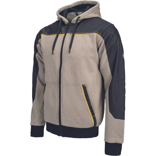 • férfi cipzáras kapucnis kardigán • puha tapintású, belül fésült anyagból • 2 kenguruzseb elöl • Oxford 600D erősítés a váll- és könyökrészeken • rugalmas passzé az ujjakon és a kardigán alján • hurkok, amelyekkel a CREMORNE télikabáthoz csatlakoztatható