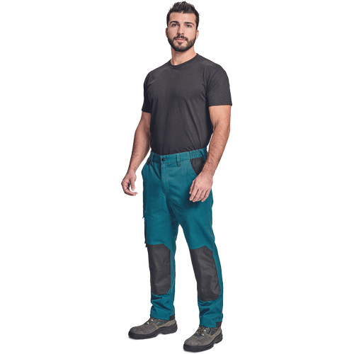 • munkanadrág pamutgazdag anyagból • modern szabással • megerősített térdrész térdvédőtartó zsebbel • 2 zseb elöl • 1 többfunkciós zseb • tépőzáras hátsó zseb • rugalmas derék • D-gyűrű • leengedhető szárak