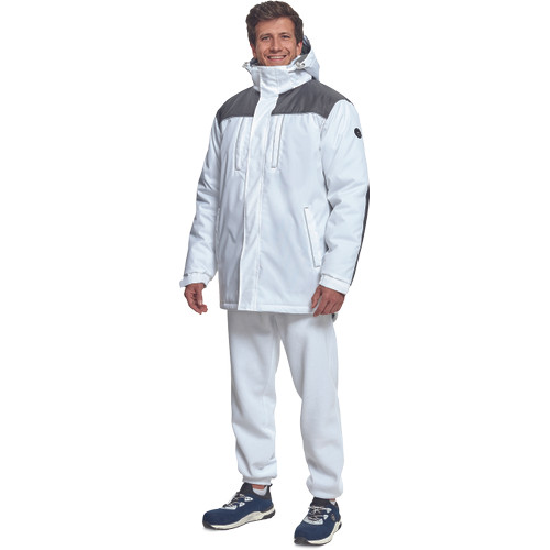 • férfi kapucnis télikabát • polár bélésű gallér • hosszított hátrész • 2 cipzáras mellkasi zseb • 2 cipzáras oldalzseb • 1 tépőzáras belső zseb • a kabát alja húzózsinórral állítható • tépőzárral állítható mandzsetta • levehető kapucni