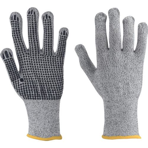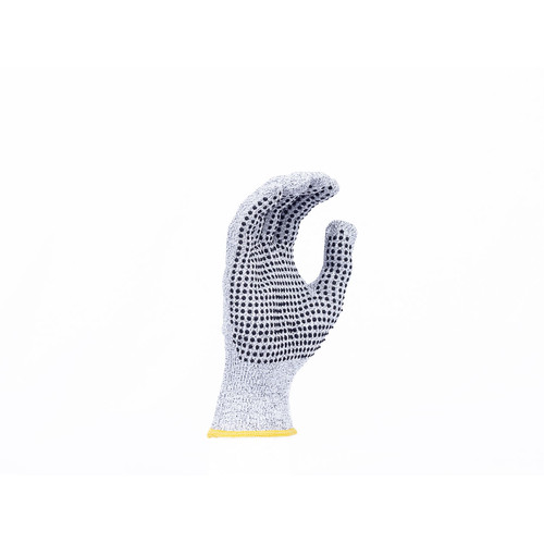 • módosított üvegszálból, spandexből és nylonból kötött, varratmentes védőkesztyű • PVC-vel pontozott tenyér és ujjak • C szintű vágásvédelem