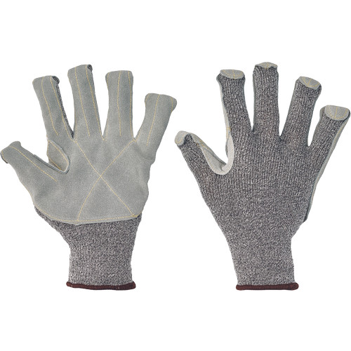 • kötött, varratmentes kesztyű E szintű vágásvédelemmel • módosított üvegszál, spandex és nylon felhasználásával, marha hasított bőr megerősítés a tenyéren és ujjbegyeken, dupla rátéttel a hüvelykujj és a mutatóujj között