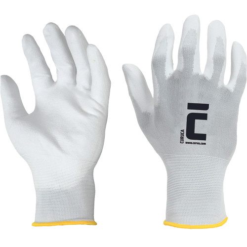 • vékony, lélegző nylon kesztyű PU-ba mártva • 18 GG • érintőképernyő barát