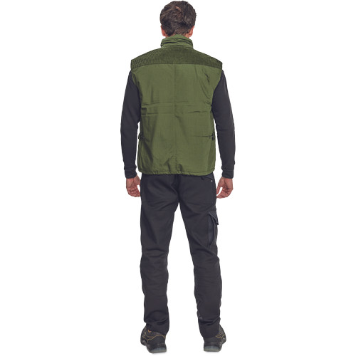 • bélelt mellény kordbársony vállrésszel • állógallér • fém patentokkal állítható bőség • húzózsinórral szűkíthető alsó szegély • gépi hímzésre alkalmas