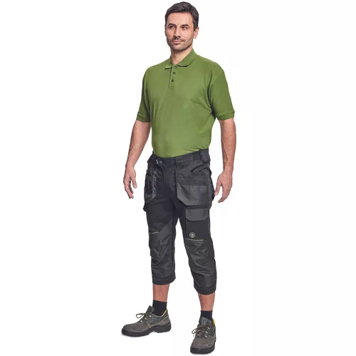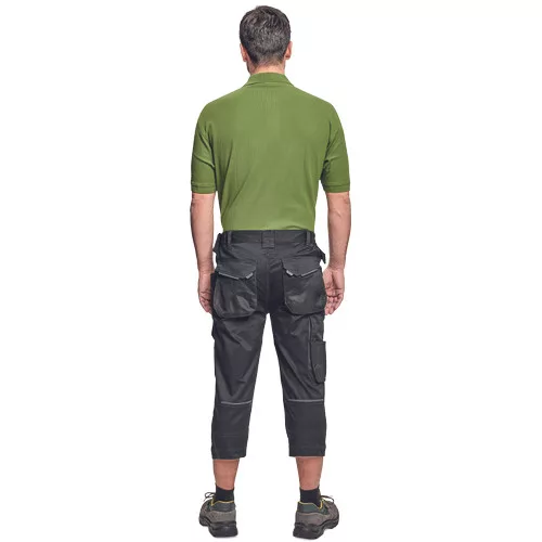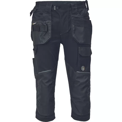 Dinamikus vonalvezetésű, modern szabású férfi 3/4-es nadrág, rugalmas, innovatív TRIFIBETEX® anyagból. Alacsony, gumírozott derékkal készül, láb- és üleprészen tartós, tripla varrásokkal. Praktikus kialakítás: tágas, multifunkcionális első zsebek szerszámtartó pánttal, 2 hátsó zseb Oxford erősítéssel, a combon telefontartó zseb tépőzáras zsebfedővel, külön zsebek vonalzónak, késnek, kalapácsnak, egyedi repülőzseb, D-gyűrű, és szerszámtartó hurok a derékpánton. A munkaruha színeivel harmonizáló fényvisszavető elemekkel egészítettük ki.Anyagösszetétel: 62% pamut, 35% poliészter, 3% elasztán • 260 g/m2