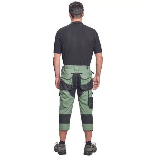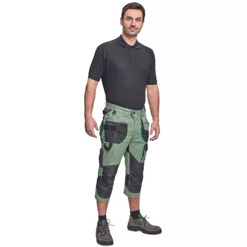 Dinamikus vonalvezetésű, modern szabású férfi 3/4-es nadrág, rugalmas, innovatív TRIFIBETEX® anyagból. Alacsony, gumírozott derékkal készül, láb- és üleprészen tartós, tripla varrásokkal. Praktikus kialakítás: tágas, multifunkcionális első zsebek szerszámtartó pánttal, 2 hátsó zseb Oxford erősítéssel, a combon telefontartó zseb tépőzáras zsebfedővel, külön zsebek vonalzónak, késnek, kalapácsnak, egyedi repülőzseb, D-gyűrű, és szerszámtartó hurok a derékpánton. A munkaruha színeivel harmonizáló fényvisszavető elemekkel egészítettük ki.Anyagösszetétel: 62% pamut, 35% poliészter, 3% elasztán • 260 g/m2