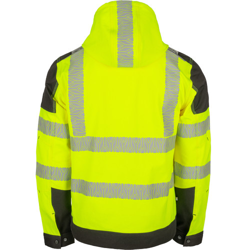 • jólláthatósági (HV) 4 irányban rugalmas poliészter szövet • szegmentált fényvisszaverő csíkok • számos praktikus zseb oldalt és elöl • levehető kapucni • textilerősítés vállrészen