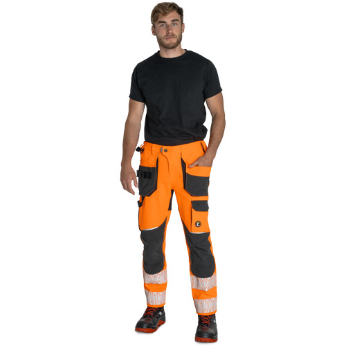 • jólláthatósági (HV), 4 irányban rugalmas poliészter stretch szövet • szegmentált fényvisszaverő csíkok• többfunkciós zsebek elöl és hátul, valamint a combrészen is • megerősített üleprész • térdrészen megerősítés, opcionálisan térdpárna behelyezési lehetőséggel • 5cm-rel kiengedhető nadrágszár