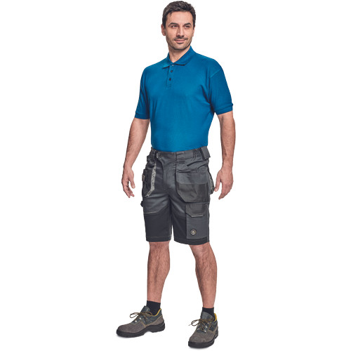 • férfi munka rövidnadrág rugalmas Trifibetex® anyagból • ergonomikus szabás • alacsony, gumírozott derék • tartós tripla varrás a szárakon és az üleprészen • tágas multifunkcionális első zsebek szerszámtartó pánttal • 2 hátsó zseb Oxford erősítéssel • a száron telefontartó zseb tépőzáras zsebfedővel • külön zsebek vonalzónak, késnek, kalapácsnak • egyedi kivitelű repülőzseb • D-gyűrű • szerszámtartó hurok a derékpánton • fényvisszavető részletek