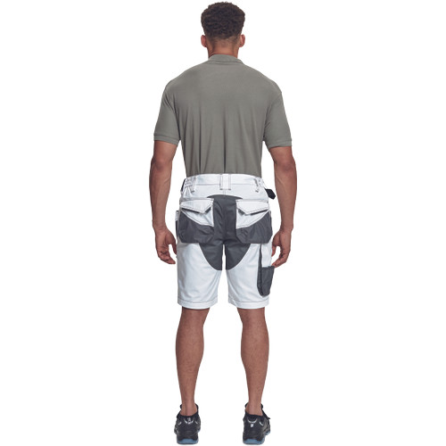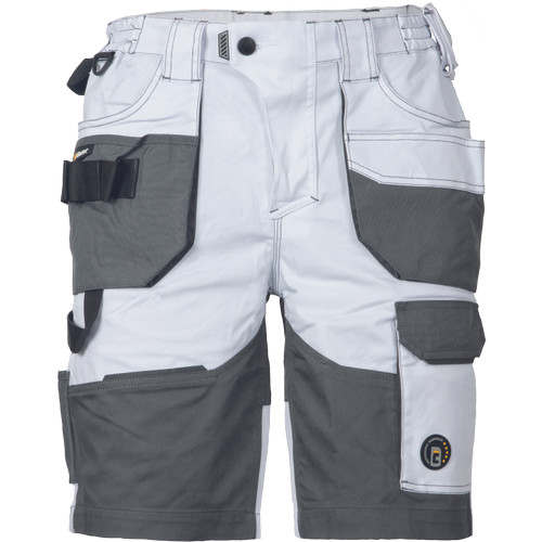 • férfi munka rövidnadrág rugalmas Trifibetex® anyagból • ergonomikus szabás • alacsony, gumírozott derék • tartós tripla varrás a szárakon és az üleprészen • tágas multifunkcionális első zsebek szerszámtartó pánttal • 2 hátsó zseb Oxford erősítéssel • a száron telefontartó zseb tépőzáras zsebfedővel • külön zsebek vonalzónak, késnek, kalapácsnak • egyedi kivitelű repülőzseb • D-gyűrű • szerszámtartó hurok a derékpánton • fényvisszavető részletek