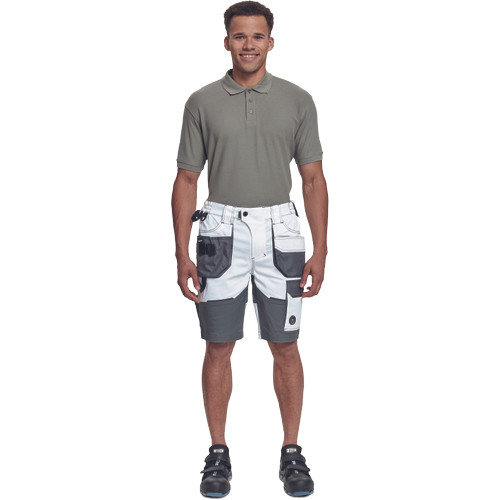 • férfi munka rövidnadrág rugalmas Trifibetex® anyagból • ergonomikus szabás • alacsony, gumírozott derék • tartós tripla varrás a szárakon és az üleprészen • tágas multifunkcionális első zsebek szerszámtartó pánttal • 2 hátsó zseb Oxford erősítéssel • a száron telefontartó zseb tépőzáras zsebfedővel • külön zsebek vonalzónak, késnek, kalapácsnak • egyedi kivitelű repülőzseb • D-gyűrű • szerszámtartó hurok a derékpánton • fényvisszavető részletek
