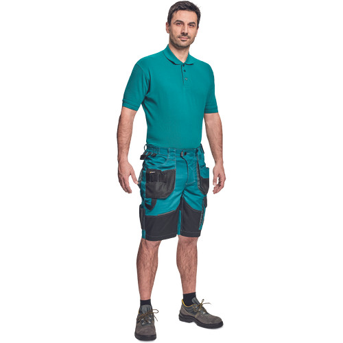 • férfi munka rövidnadrág rugalmas Trifibetex® anyagból • ergonomikus szabás • alacsony, gumírozott derék • tartós tripla varrás a szárakon és az üleprészen • tágas multifunkcionális első zsebek szerszámtartó pánttal • 2 hátsó zseb Oxford erősítéssel • a száron telefontartó zseb tépőzáras zsebfedővel • külön zsebek vonalzónak, késnek, kalapácsnak • egyedi kivitelű repülőzseb • D-gyűrű • szerszámtartó hurok a derékpánton • fényvisszavető részletek