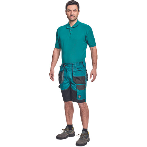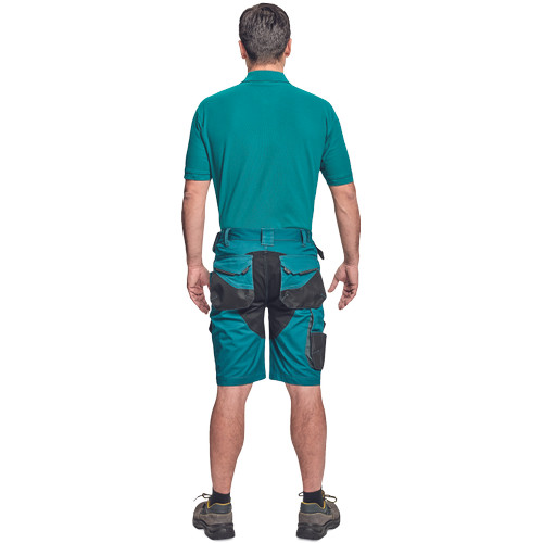 • férfi munka rövidnadrág rugalmas Trifibetex® anyagból • ergonomikus szabás • alacsony, gumírozott derék • tartós tripla varrás a szárakon és az üleprészen • tágas multifunkcionális első zsebek szerszámtartó pánttal • 2 hátsó zseb Oxford erősítéssel • a száron telefontartó zseb tépőzáras zsebfedővel • külön zsebek vonalzónak, késnek, kalapácsnak • egyedi kivitelű repülőzseb • D-gyűrű • szerszámtartó hurok a derékpánton • fényvisszavető részletek