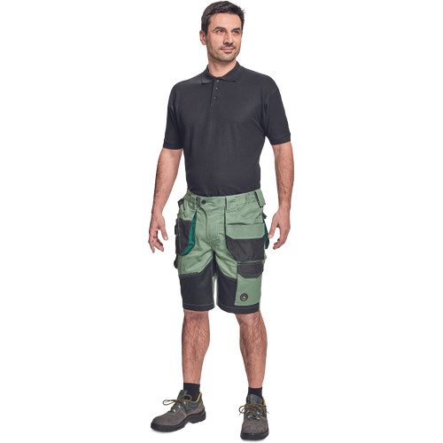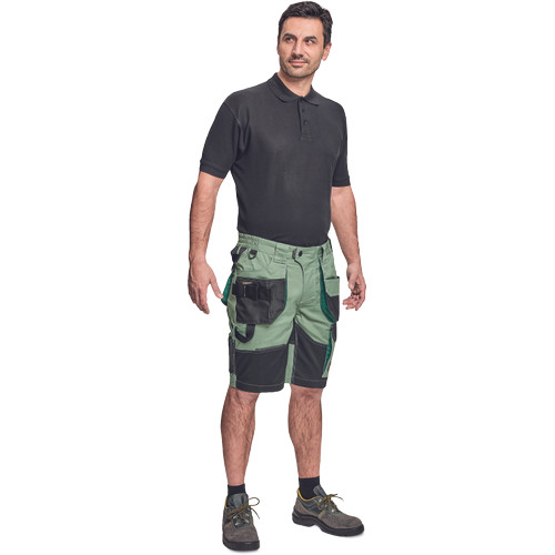 • férfi munka rövidnadrág rugalmas Trifibetex® anyagból • ergonomikus szabás • alacsony, gumírozott derék • tartós tripla varrás a szárakon és az üleprészen • tágas multifunkcionális első zsebek szerszámtartó pánttal • 2 hátsó zseb Oxford erősítéssel • a száron telefontartó zseb tépőzáras zsebfedővel • külön zsebek vonalzónak, késnek, kalapácsnak • egyedi kivitelű repülőzseb • D-gyűrű • szerszámtartó hurok a derékpánton • fényvisszavető részletek