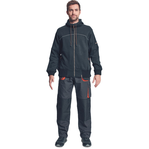• modern stílusú pulóver két színes cipzárral és kontrasztos díszítésekkel • fényvisszavető elemek mellrészen és a háton • rugalmas, kötött mandzsetta az ujjakon és a pulóver alján • rugalmas zsinór a kapucniban