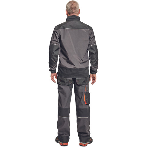 • férfi dzseki multifunkciós zsebekkel • D-gyűrű • Oxford erősítés a könyökrészen • biztonságos telefonzseb • fényvisszavető elem • kontrasztos színű erősítések • fedett cipzár