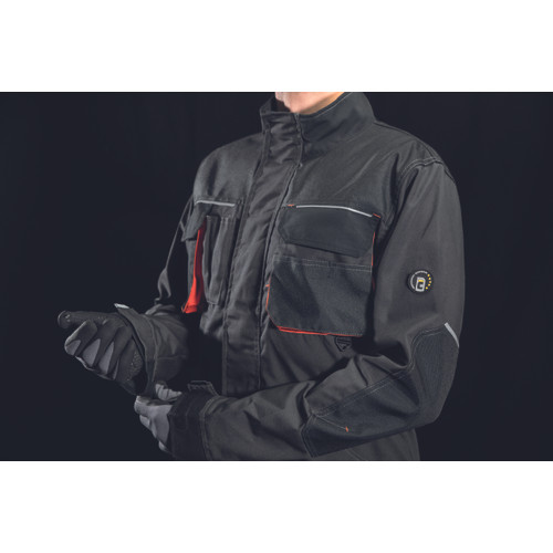 • férfi dzseki multifunkciós zsebekkel • D-gyűrű • Oxford erősítés a könyökrészen • biztonságos telefonzseb • fényvisszavető elem • kontrasztos színű erősítések • fedett cipzár