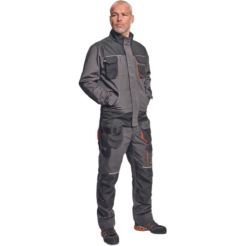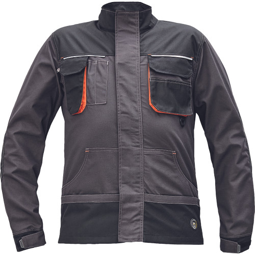 • férfi dzseki multifunkciós zsebekkel • D-gyűrű • Oxford erősítés a könyökrészen • biztonságos telefonzseb • fényvisszavető elem • kontrasztos színű erősítések • fedett cipzár
