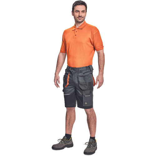 • férfi rövidnadrág tágas zsebekkel • 2 szerszámtartó hurok • Oxford 600D erősítés az igénybevett részeken • tartós hármas varrás • rugalmas derék, fényvisszavető elemek • az erősítéseken kontrasztos színű varratokkal