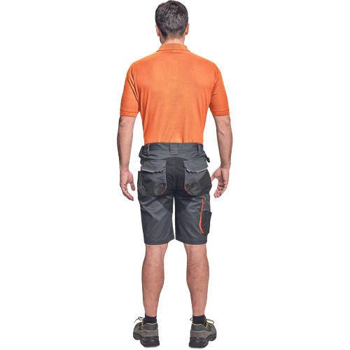 • férfi rövidnadrág tágas zsebekkel • 2 szerszámtartó hurok • Oxford 600D erősítés az igénybevett részeken • tartós hármas varrás • rugalmas derék, fényvisszavető elemek • az erősítéseken kontrasztos színű varratokkal