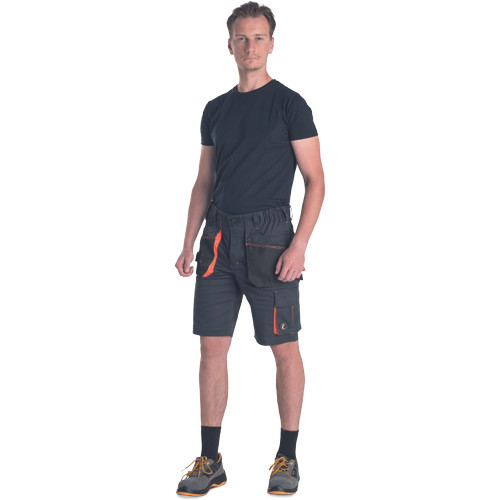 • munka rövidnadrág, rendkívül tartós rugalmas anyagból, elasztikus derékkal • multifunkcionális zsebek • Oxford 600D megerősítés a nagy igénybevételű területeken • szegmensekre bontott fényvisszavető részletek