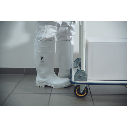 » antisztatikus, növényi olajoknak és állati zsíroknak ellenálló PVC és nitril csizma acél lábujjvédővel és mély profilú talppal » megőrzi rugalmasságát -20 °C-ig. Megfelel: EN ISO 20345:2011 S4