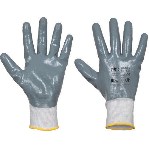 • nitrilbe mártott, varrat nélküli, kötött poliészter kesztyű