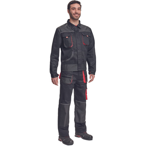• férfi munkakabát • cipzáras kivitelben, tépőzáras hajtókával • 2 tépőzáras mellzseb • 2 multifunkcionális oldalzseb • OXFORD poliészter erősítés könyökrészeken és a vállakon • 100% pamut, 235g/m2