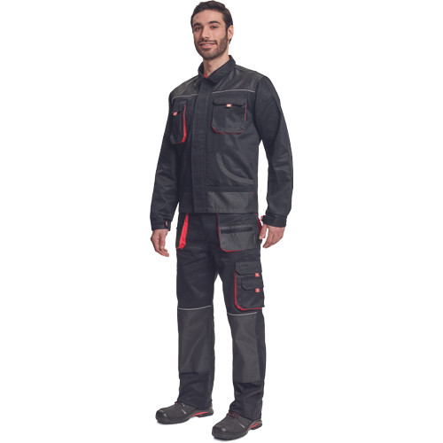 • férfi munkakabát • cipzáras kivitelben, tépőzáras hajtókával • 2 tépőzáras mellzseb • 2 multifunkcionális oldalzseb • OXFORD poliészter erősítés könyökrészeken és a vállakon • 100% pamut, 235g/m2