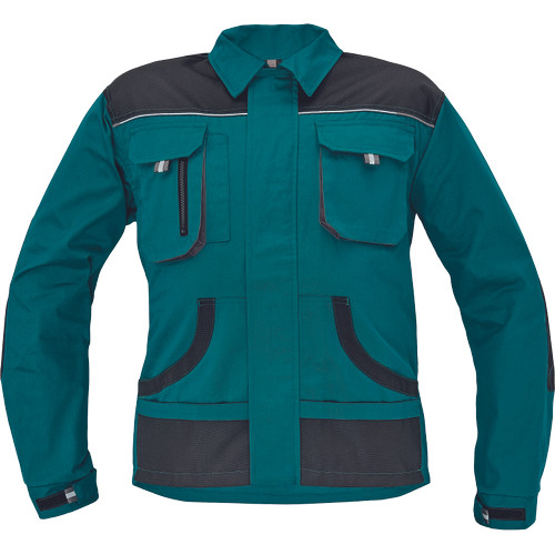 • férfi munkakabát • cipzáras kivitelben, tépőzáras hajtókával • 2 tépőzáras mellzseb • 2 multifunkcionális oldalzseb • OXFORD poliészter erősítés könyökrészeken és a vállakon • 100% pamut, 235g/m2