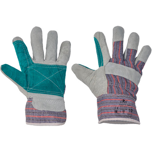 • kombinált védőkesztyű • hasított marhabőr tenyér, textil kézfej • tenyéren megerősített • merev mandzsetta