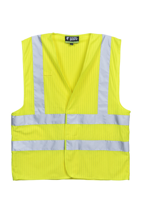 98% poliészter + 2% antisztatikus szál - 120 g/m2 vastag4 lángálló FR fényvisszaverő csíkA mellény szélessége állítható