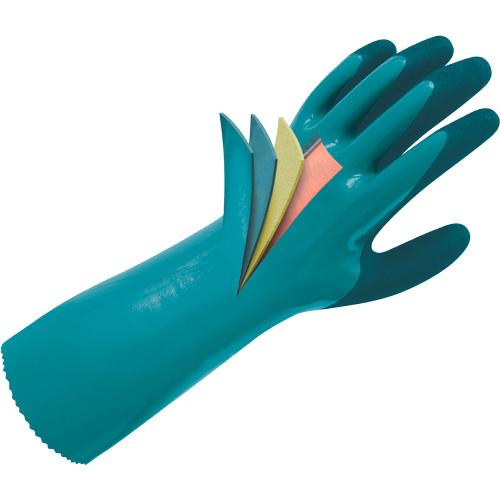 • vegyszeralló nitril kesztyű egyedi HI-VIS színű vágásbiztos béléssel • azonnal látható lesz, ha megvágja a kesztyűt és azt cserélni kell • az ujjak és a tenyér speciális felülettel tökéletes tapadást biztosítanak • hossza: 35 cm