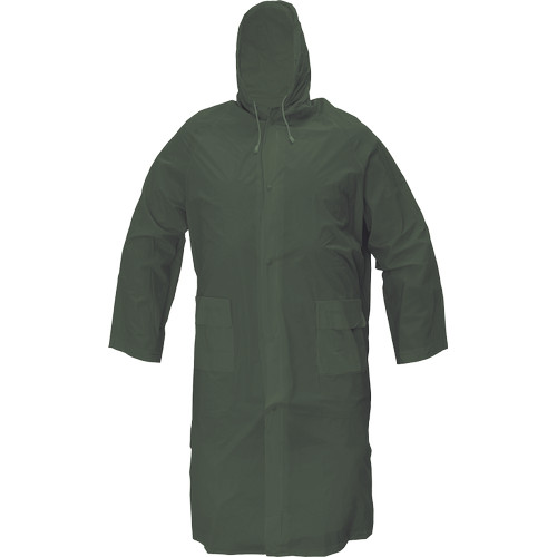 • hosszított vízálló védőköpeny kapucnival • könnyű, textil hatású PVC-ből, ragasztott varratokkal • 2 elülső hajtókás zseb • patenttal állítható mandzsetta • szellőzők a háton és a hónaljrészen • zsinórral állítható kapucnival