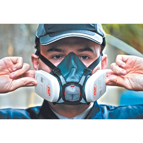 »Force8 félálarc L méretű iker szűrőbetétekhez.A Force®8 ikerszűrős félálarc Typhoon™ szeleppel kivételesen alacsony légzési ellenállást biztosít, gyorskioldóval felszerelt 4-pontos tartópántokkal. A maszk tartós armoplastic gumiból készül, így kitűnően illeszkedik a viselő arcához. A maszkhoz valamennyi alacsony profilú Force®8 szűrő csatlakoztatható, alkalmassá téve a légzésvédőt a változatos felhasználásra. A légzésvédő a szűrőkkel védelmet nyújt ártalmas részecskék, sokféle gáz és gőzök ellen.Szabványok: EN 140, EN 14387: 2004, EN 143: 2000