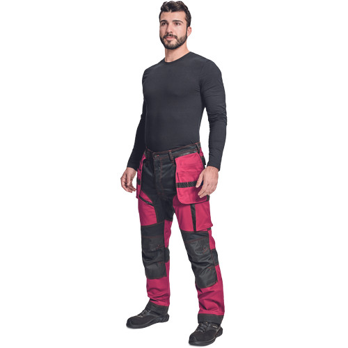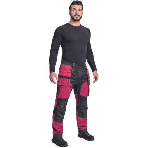 • férfi munkanadrág rugalmas derékkal • 2 oldalsó zseb, két szerszámtartó zsebbel elöl • D-gyűrű • 1 oldalsó zseb a lábon hajtókával • 1 oldalsó zseb cipzárral • 2 hátsó hajtókás zseb • megerősített térdrész, térdvédőtartó • 5 cm-rel meghosszabbítható nadrágszárak • a nadrág hátsó, alsó része megerősített • dekoratív varratok • 265 g/m2