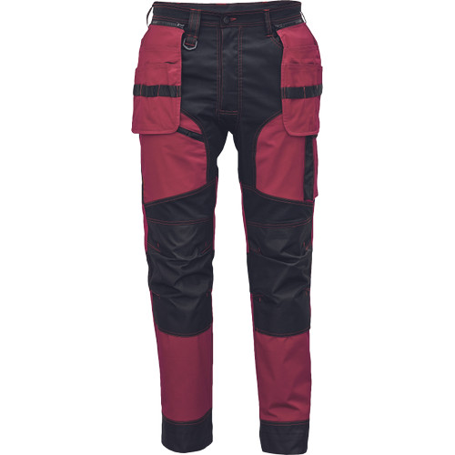 • férfi munkanadrág rugalmas derékkal • 2 oldalsó zseb, két szerszámtartó zsebbel elöl • D-gyűrű • 1 oldalsó zseb a lábon hajtókával • 1 oldalsó zseb cipzárral • 2 hátsó hajtókás zseb • megerősített térdrész, térdvédőtartó • 5 cm-rel meghosszabbítható nadrágszárak • a nadrág hátsó, alsó része megerősített • dekoratív varratok • 265 g/m2