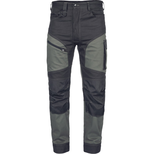 • minőségi férfi munkanadrág elasztikus anyagból • 2 oldalzseb • 2 hátsó zseb tépőzárral • 2 combzseb • megerősített térdzsebek térdvédő betét behelyezési lehetőséggel • hosszabbítható nadrágszárak akár 5 cm-rel • díszvarrás